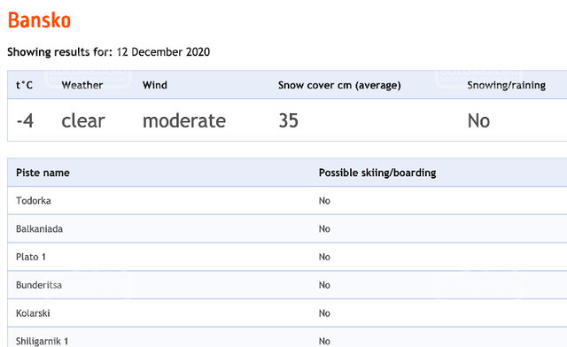 Прогноз погоды на горнолыжном курорте Банско в Болгарии - прогноз выпадения снега, состояние склонов, снежный покров на трассах в горах Пирин.... Еще