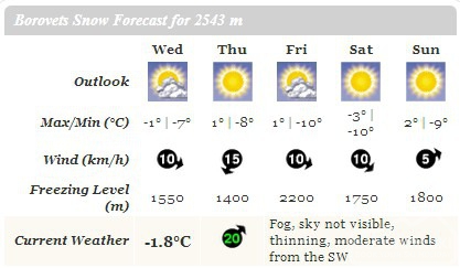 Коллектив SkiBulgaria.ru предлагает Вам узнать прогноз погоды на горнолыжном курорте Боровец и в горах Рила в Болгарии.... Еще