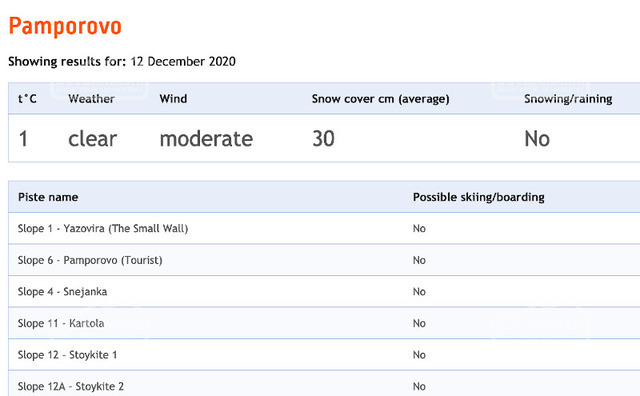 Прогноз погоды на горнолыжном курорте Пампорово в Болгарии - прогноз выпадения снега, состояние склонов, снежный покров на трассах в горах Родопы.... Еще
